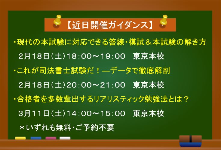 司法書士試験講師/松本雅典(辰已法律研究所)が運営するサイトです。リアリスティック一発合格松本基礎講座を担当中。著書『司法書士5ヶ月合格法』『リアリスティックテキスト』『スマートリアリ』等19冊。All About司法書士試験ガイド。