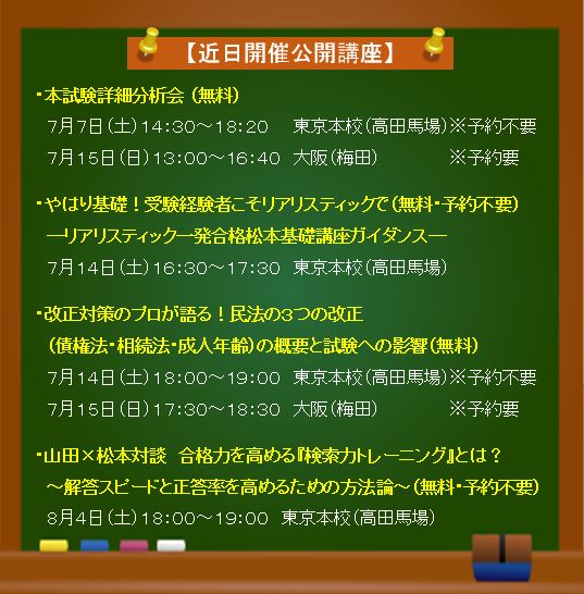 司法書士試験講師/松本雅典(辰已法律研究所)が運営するサイトです。リアリスティック一発合格松本基礎講座を担当中。著書『司法書士5ヶ月合格法』『リアリスティックテキスト』『スマートリアリ』等19冊。All About司法書士試験ガイド。