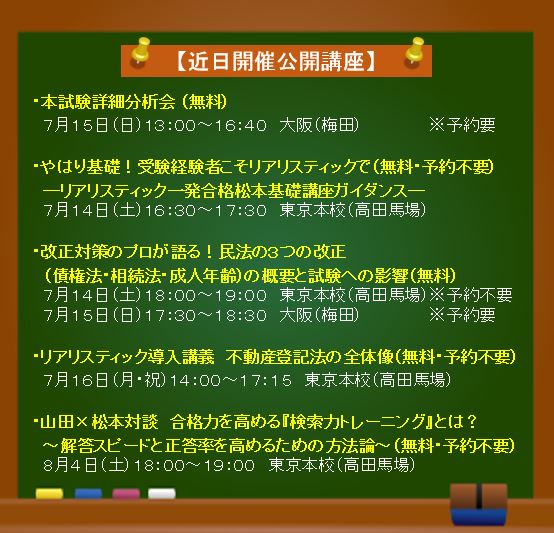司法書士試験講師/松本雅典(辰已法律研究所)が運営するサイトです。リアリスティック一発合格松本基礎講座を担当中。著書『司法書士5ヶ月合格法』『リアリスティックテキスト』『スマートリアリ』等19冊。All About司法書士試験ガイド。